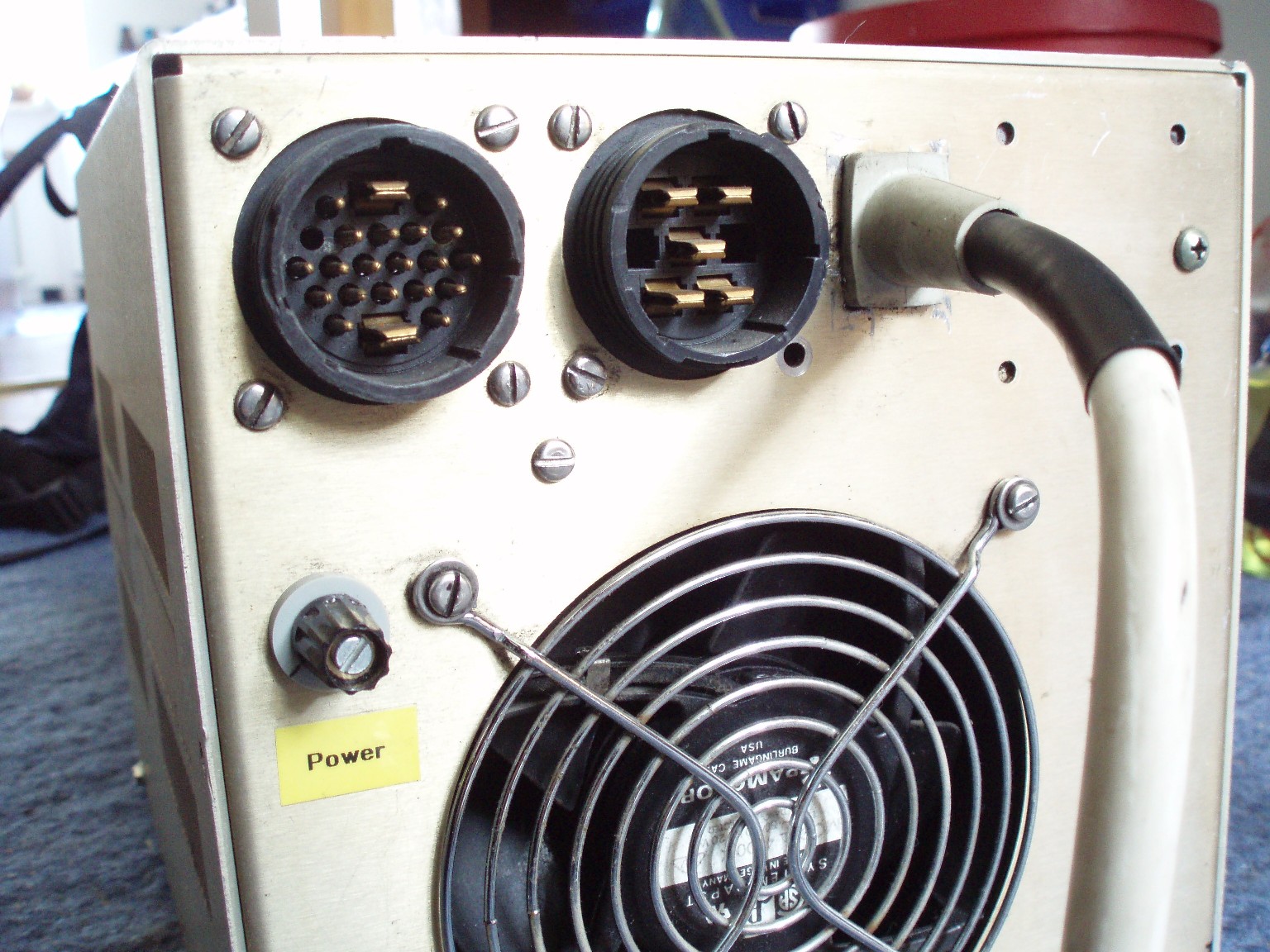 Ich habe mir kürzlich zwei Ersatzlaserköpfe in unbekanntem Zustand und zwei Tarzanlüfter besorgt. Einer der Laserköpfe ist dejustiert und im anderen zündet die Röhre nur kurzzeitig. Möglicherweise ist diese Röhre im Überdruck. Einen der Laserköpfe habe ich gereinigt und mit der Röhre aus dem anderen Laserkopf bestückt, da ich glaube, dass diese Röhre relativ ungenutzt ist. Das schließe ich daraus, dass auf dem Gehäuse ein Aufkleber von Omnichrome war, dem zu Folge die Röhre ersetzt wurde. Abgesehen davon ließ sich diese Röhre zünden und hat gut geleuchtet. Die Zündplatinen in beiden Köpfen sind nun defekt (wohl an Altersschwäche gestorben). Ich werde die Bauteile bei Gelegenheit auswechseln und den Laser justieren. |