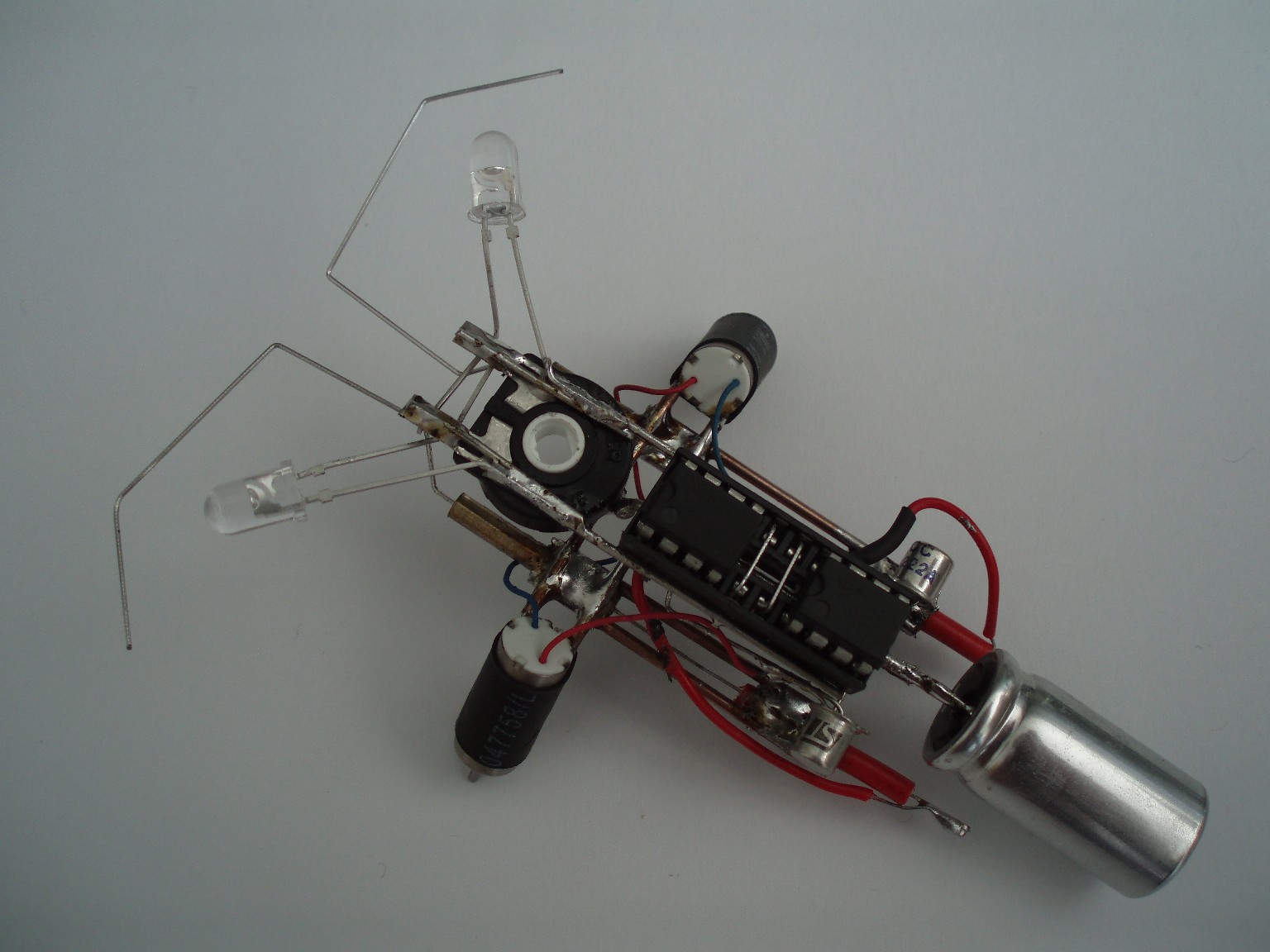 Ich bin schon seit sehr langer Zeit an der Robotik interessiert, aber aus fehlenden Elektronik-Kenntnissen waren mir Roboter immer eine Nummer zu aufwändig. Bei den BEAM-Robotern ist die Elektronik so einfach, dass der Nachbau und eigene Kreationen kein großes Problem mehr darstellen. Da diese Kerlchen derartig kostengünstig sind, werden in Zukunft wohl immer wieder mal welche dazukommen. |