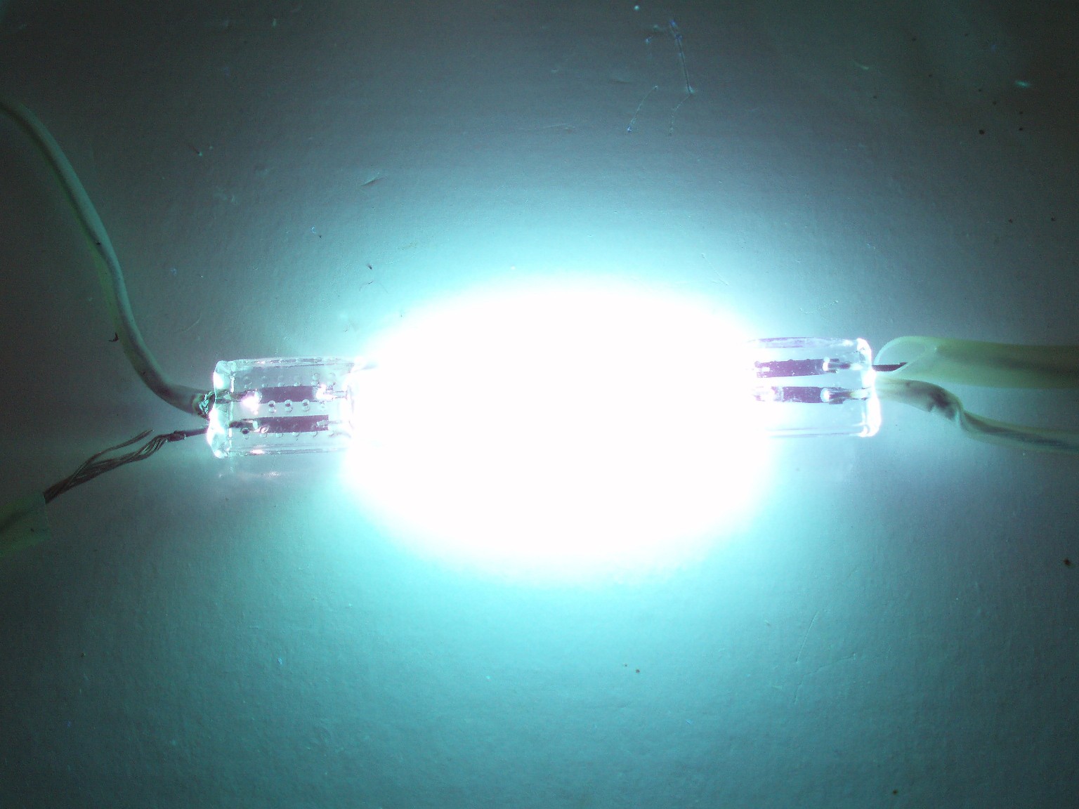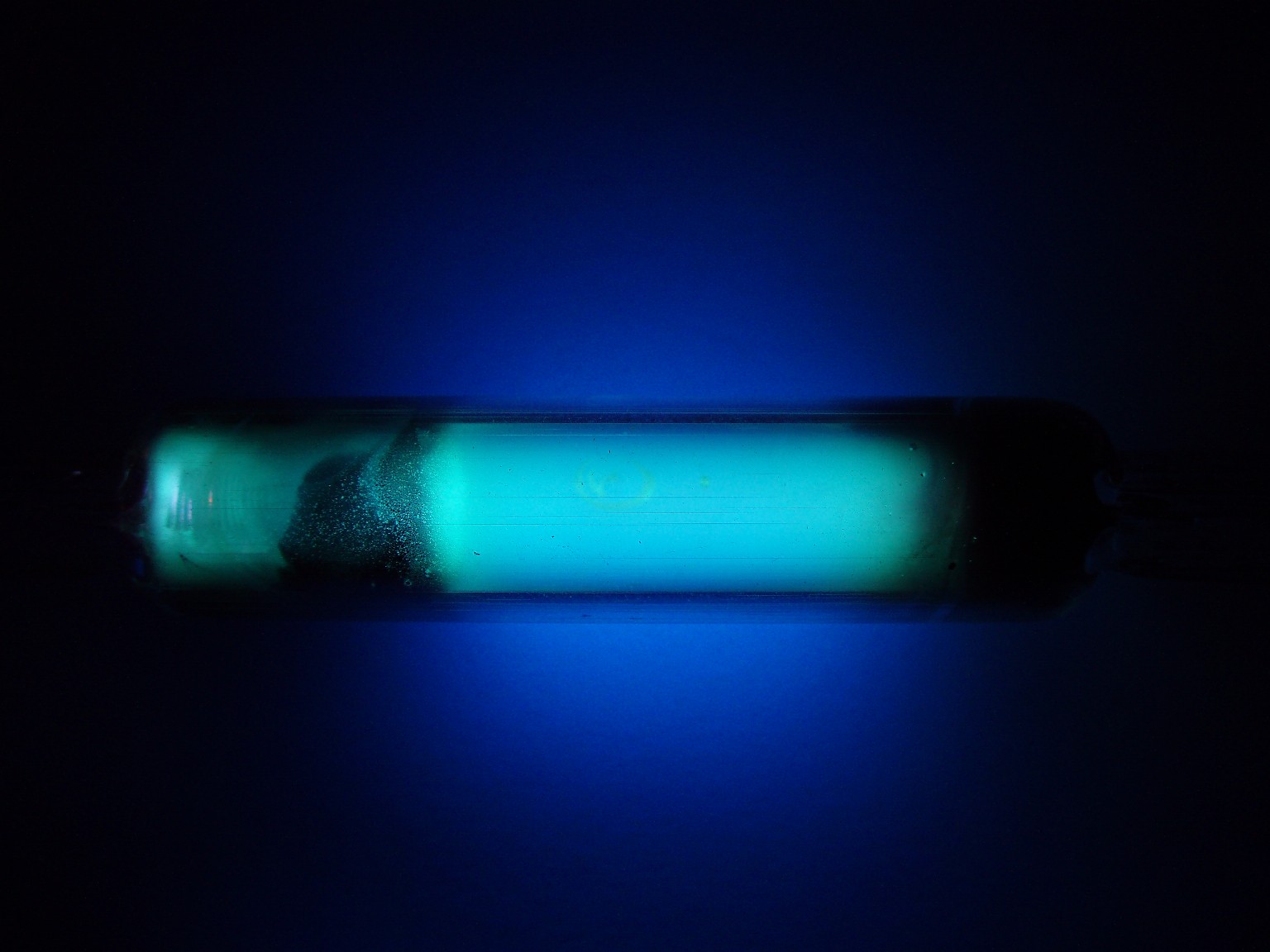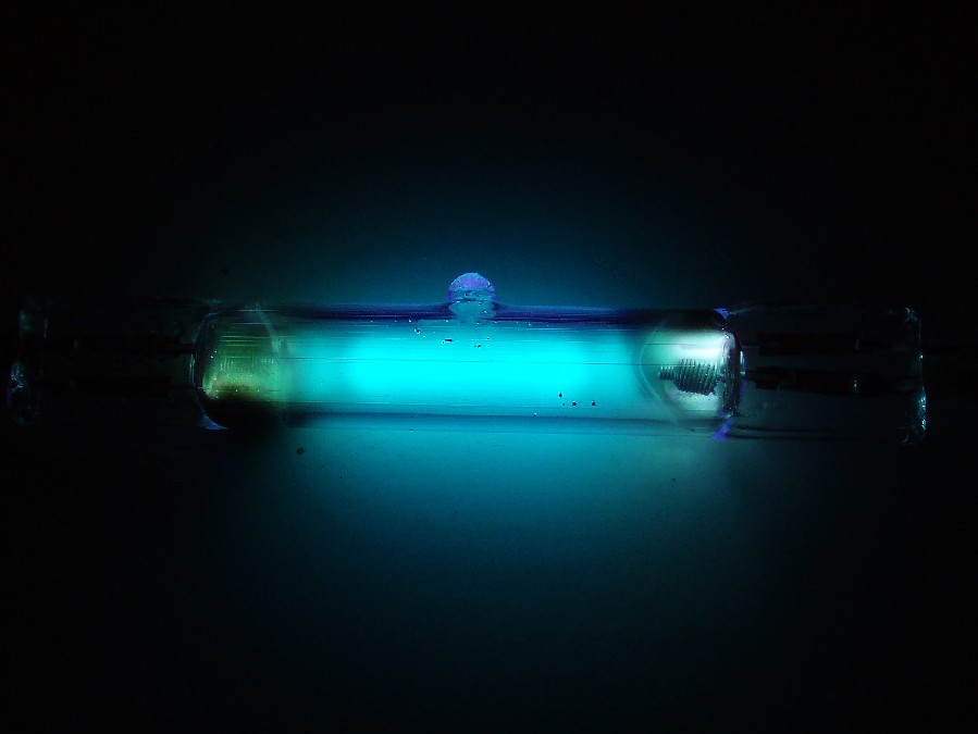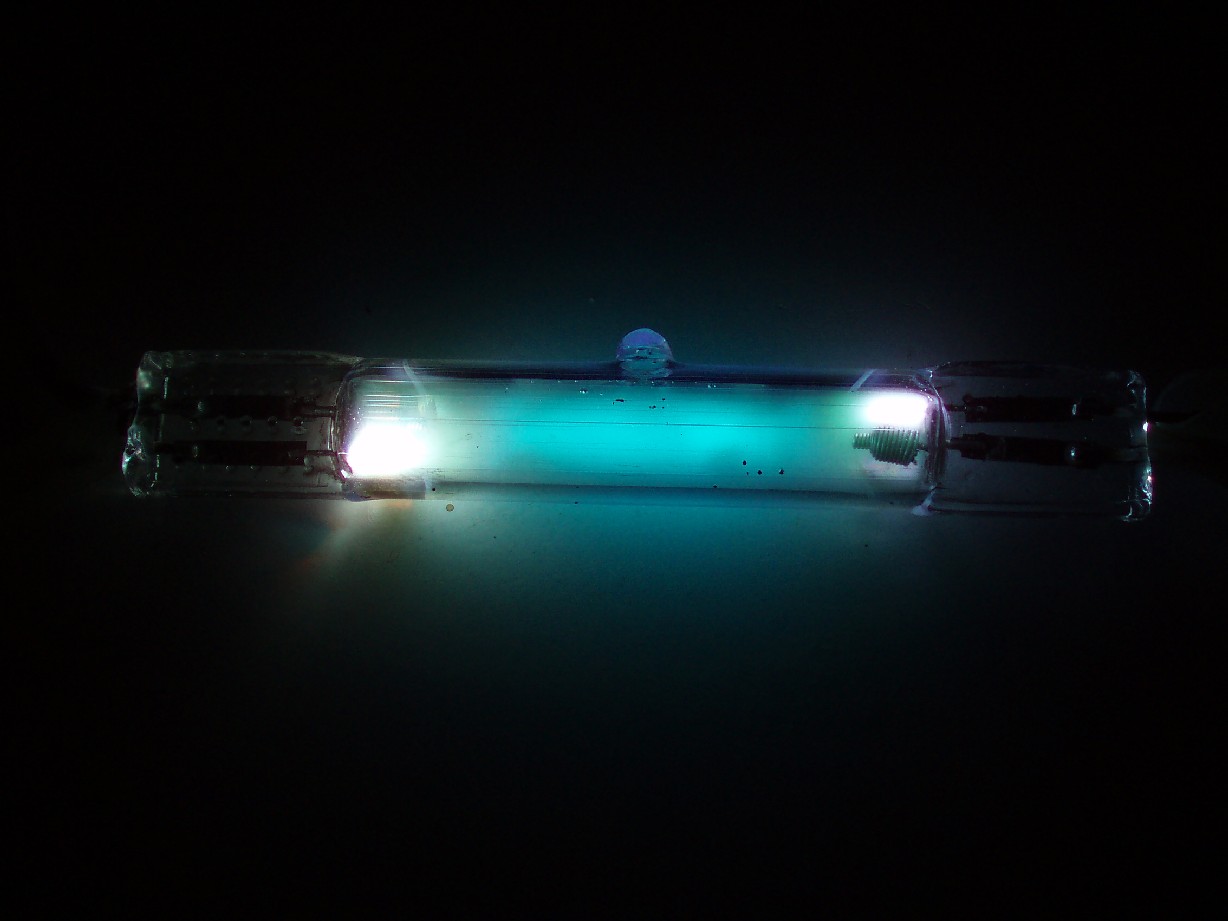 Die Entladungsröhre hat vier Anschlüsse und ähnelt von der Form her einer Halogenlampe. Im Betrieb stört sie recht wirkungsvoll Fernseh- und Radioempfang. :)