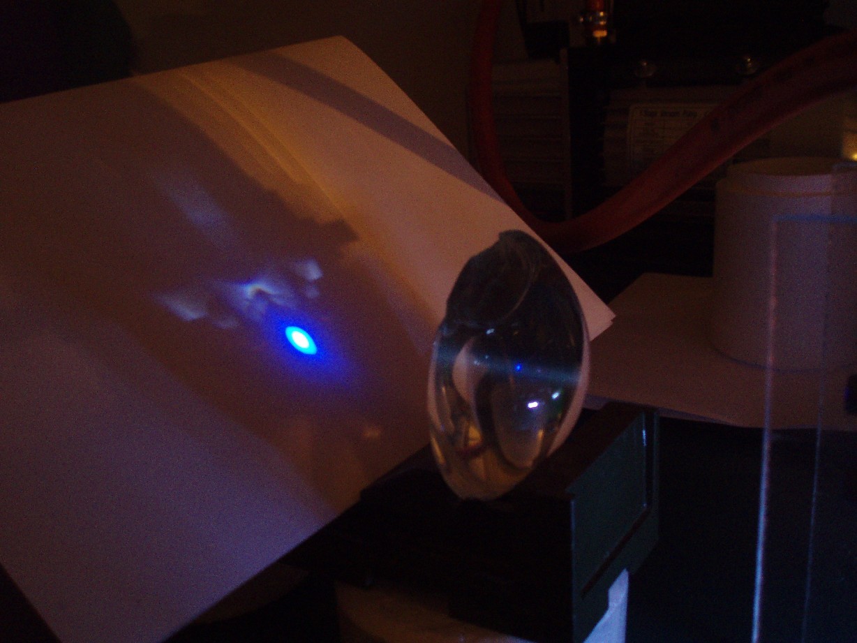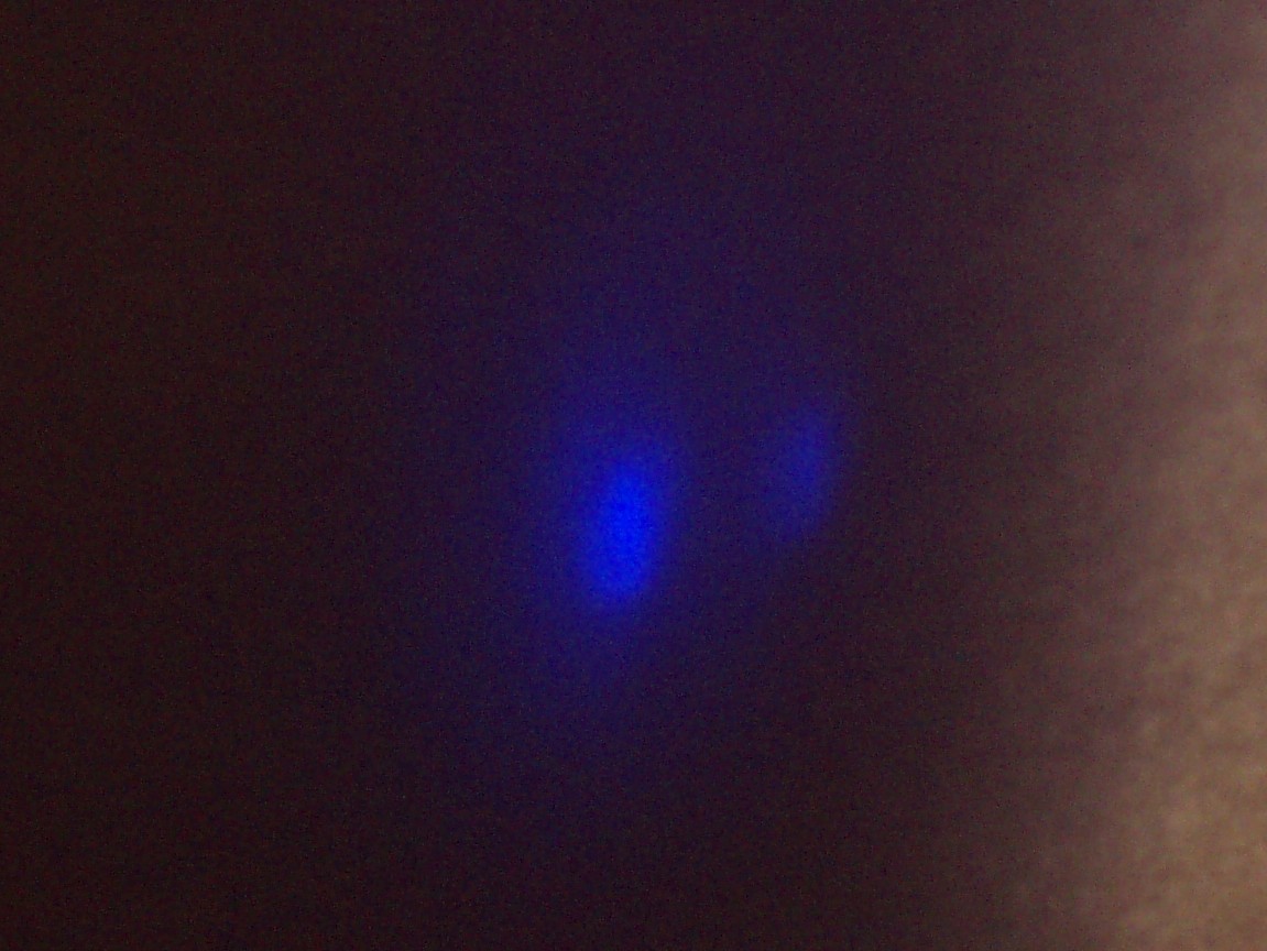 bei dem zweiten Fluoreszenzfleck (rechts) um Laserstrahlung bei 357,6 nm handeln dürfte.