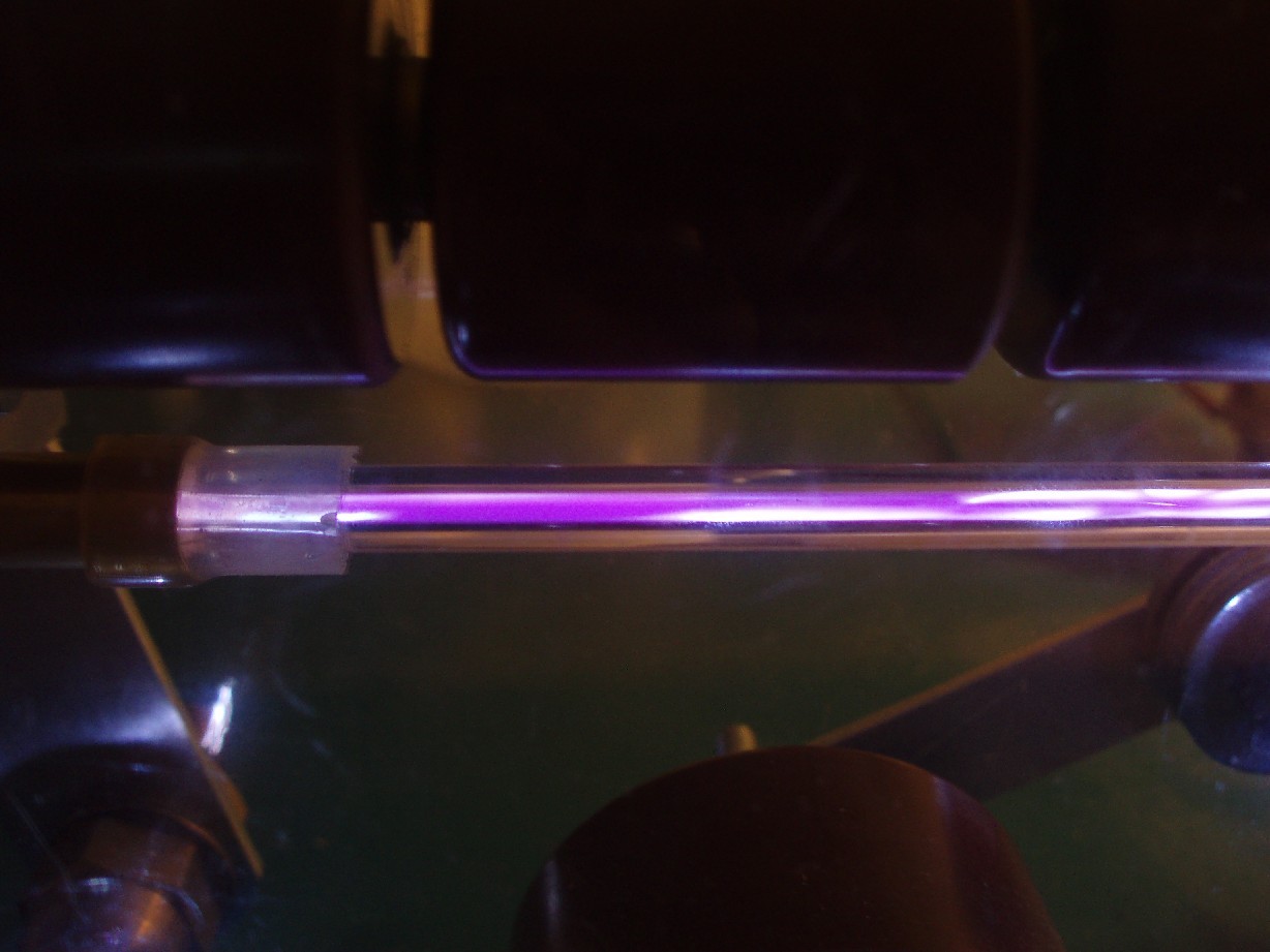zum anderen kaum die Entladungsröhre aus Borosilikat-Glas durchdringen würde. Außerdem